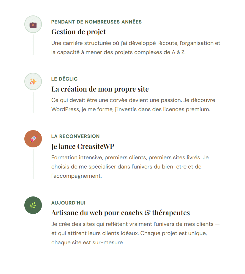 J’ai décidé de me former sérieusement à WordPress, d’investir dans les meilleurs outils, et de me lancer. Aujourd’hui, je ne crée pas juste des sites, je construis des outils qui travaillent pour mes clients, même quand ils accompagnent les leurs.